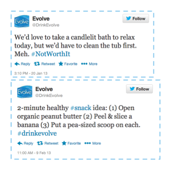 In 2013, Muscle Milk launched Evolve a brand new protein beverage for women, and I helped compose content for its social media channels. In 5 months its communities grew from nothing to 12 thousand fans. I also provided the titles and ideas for ten of @DrinkEvolve’s Pinterest boards.